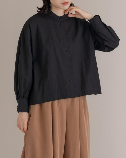 バンドカラーシャツ / タイプライターコットン / チャコールグレー