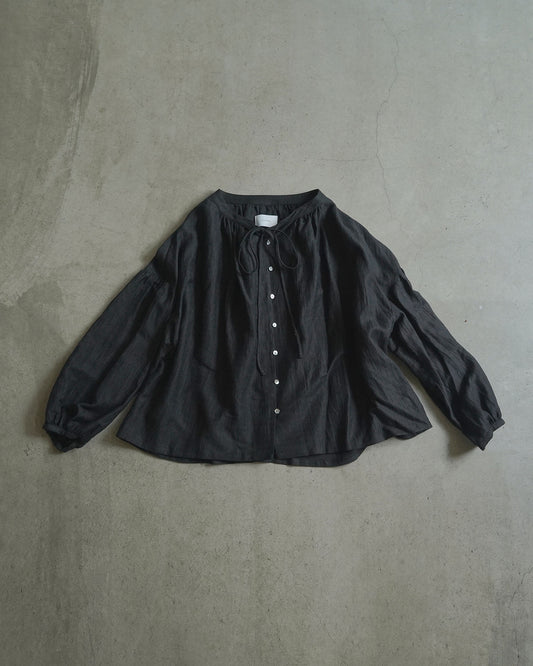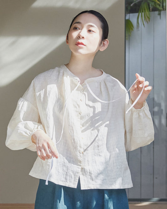 ボートネックギャザーブラウス / リネンコットンドビー