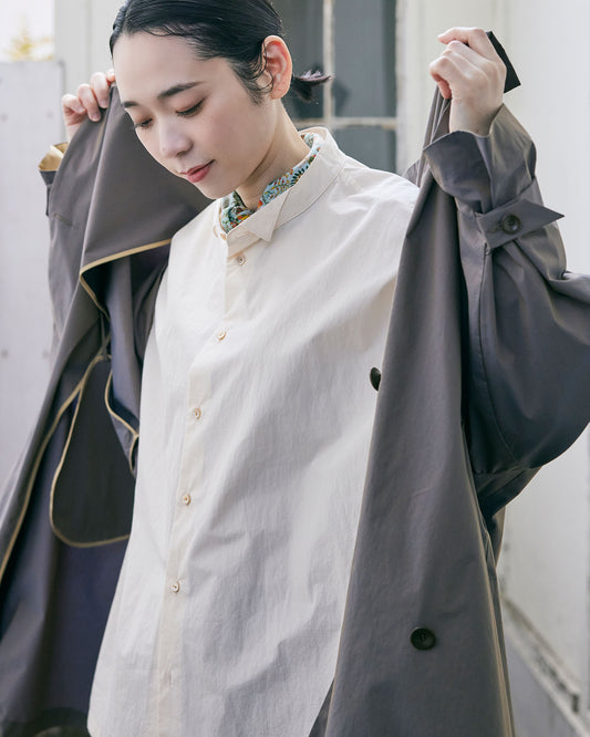 バンドカラーシャツ / タイプライターコットン / シルバーグレー