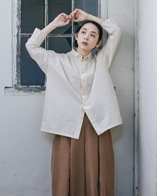 バンドカラーシャツ / タイプライターコットン / アイスブルー