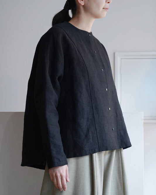 [Available from 12:00 PM on Saturday, March 7th] Collarless yoke shirt/washed linen
