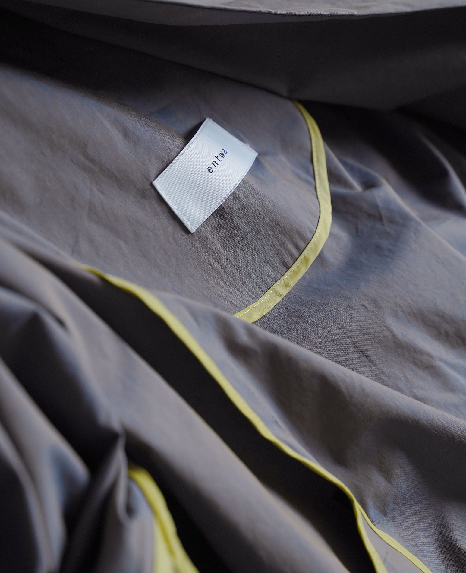 ・entwaでは、ご家庭で安心して洗濯いただけるよう、あらかじめ生地洗い加工のテストを行っております。初めて洗濯された際の生地の風合いや伸縮の変化を極力抑えるように試みていますが、洗濯の際は、品質表示を参考の上、ご家庭の洗濯機に合った方法をお選びください。