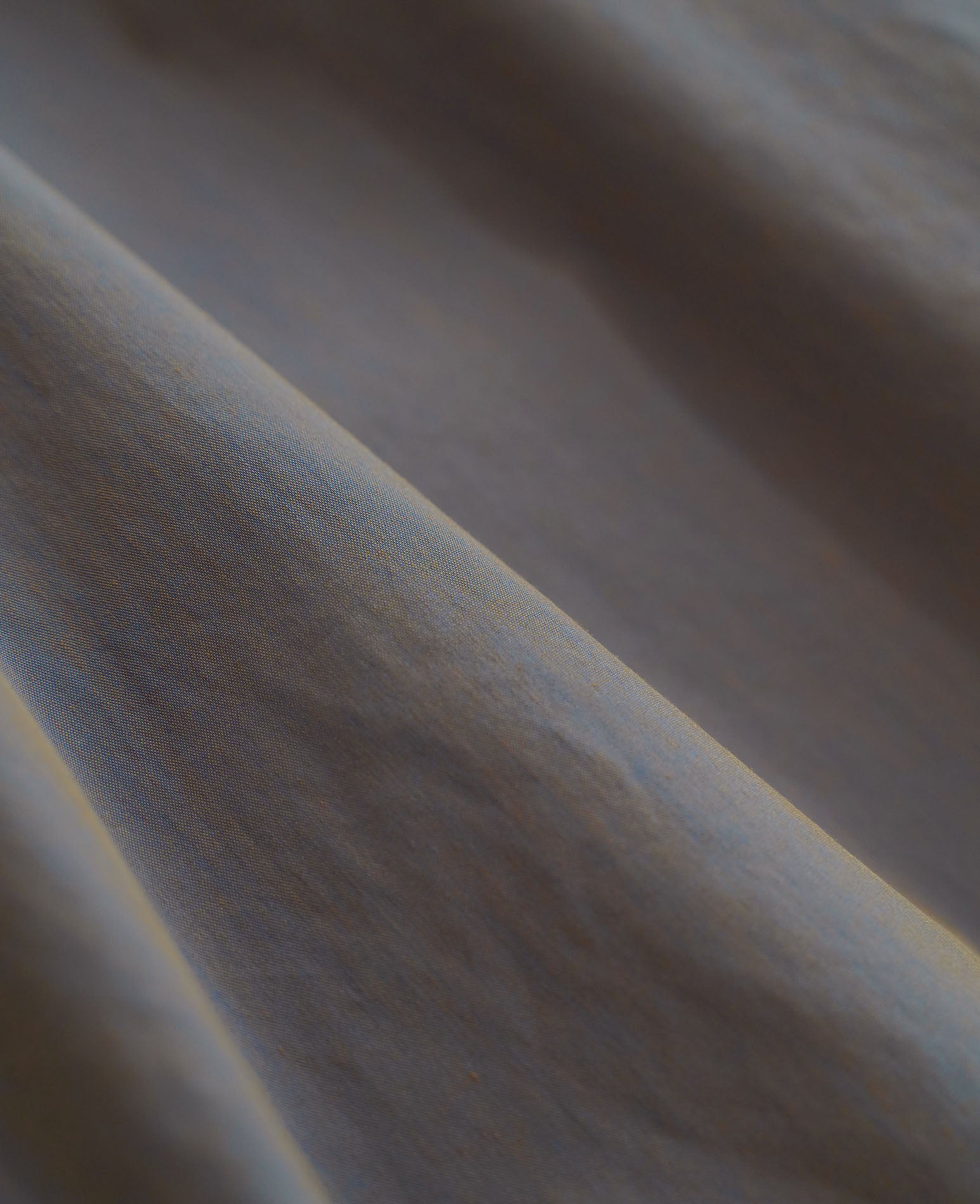 タテ糸、ヨコ糸でそれぞれに異なる色を使用し、光の当たり方によって見え方が変わる玉虫色のような表情が魅力的。