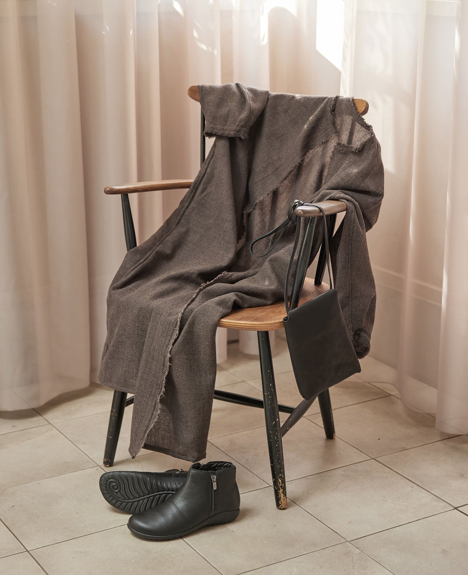 柔らかくほんのり透ける素材が、動きに合わせて静かに揺れ動く。