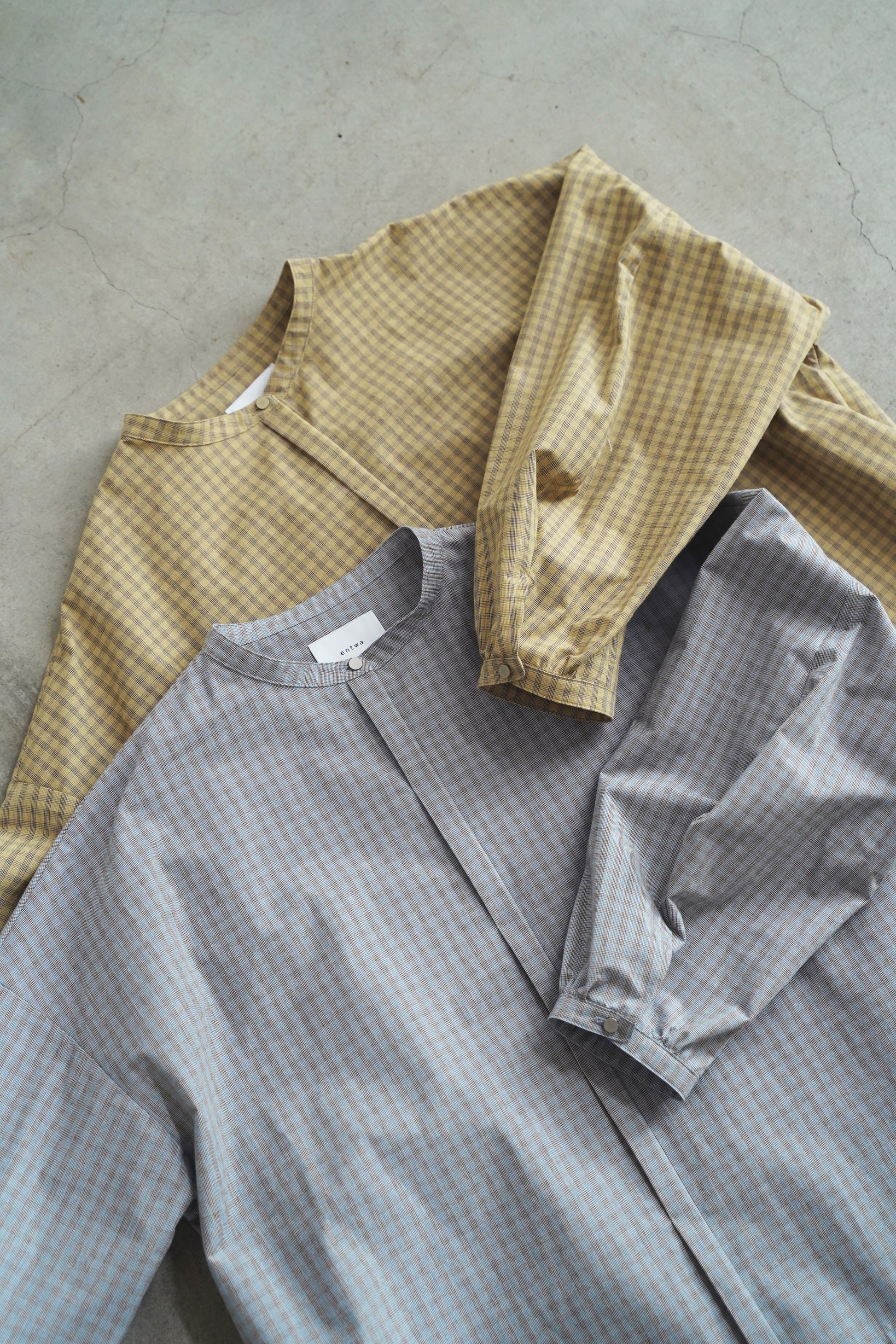 ▫︎entwaでは、ご家庭で安心して洗濯いただけるよう、あらかじめ生地洗い加工のテストを行っております。初めて洗濯された際の生地の風合いや伸縮の変化を極力抑えるように試みていますが、洗濯の際は、品質表示を参考の上、ご家庭の洗濯機に合った方法をお選びください。