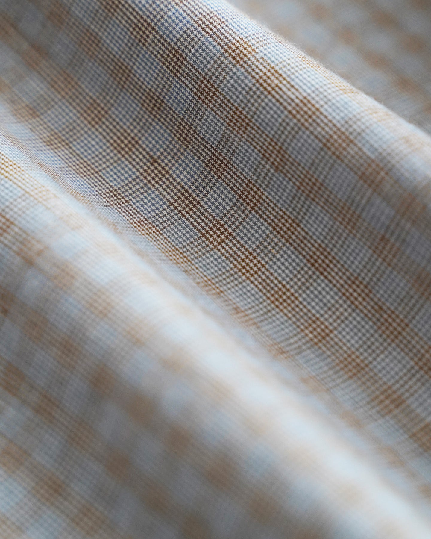ぱりっとしたハリ感のあるブロックチェック生地は、体の線を拾いすぎずに綺麗なシルエットを叶えてくれます。