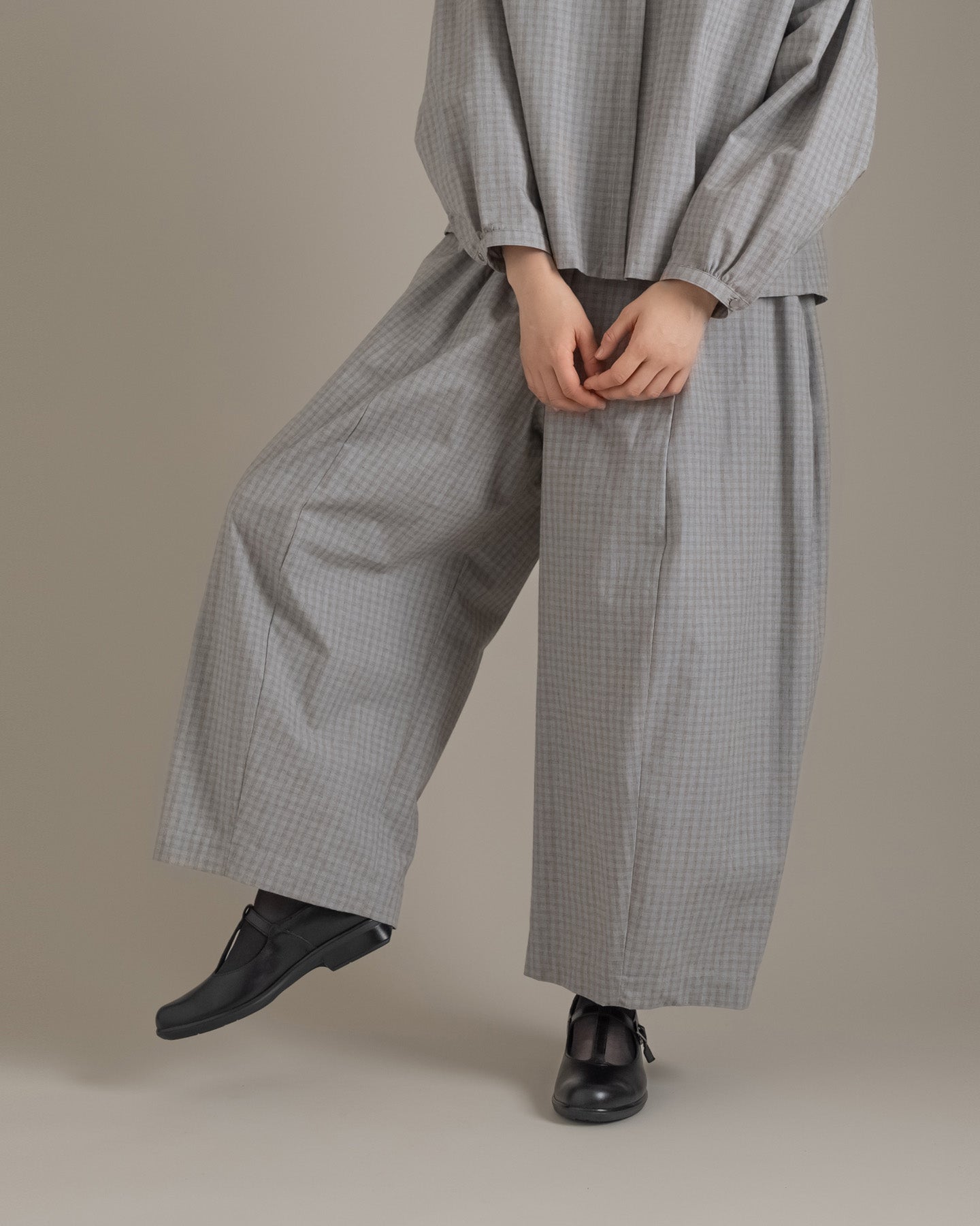 ・entwa定番のワイドパンツは、中央の切り替えでほどよいふくらみを出した“ゆるバルーン”シルエット。
