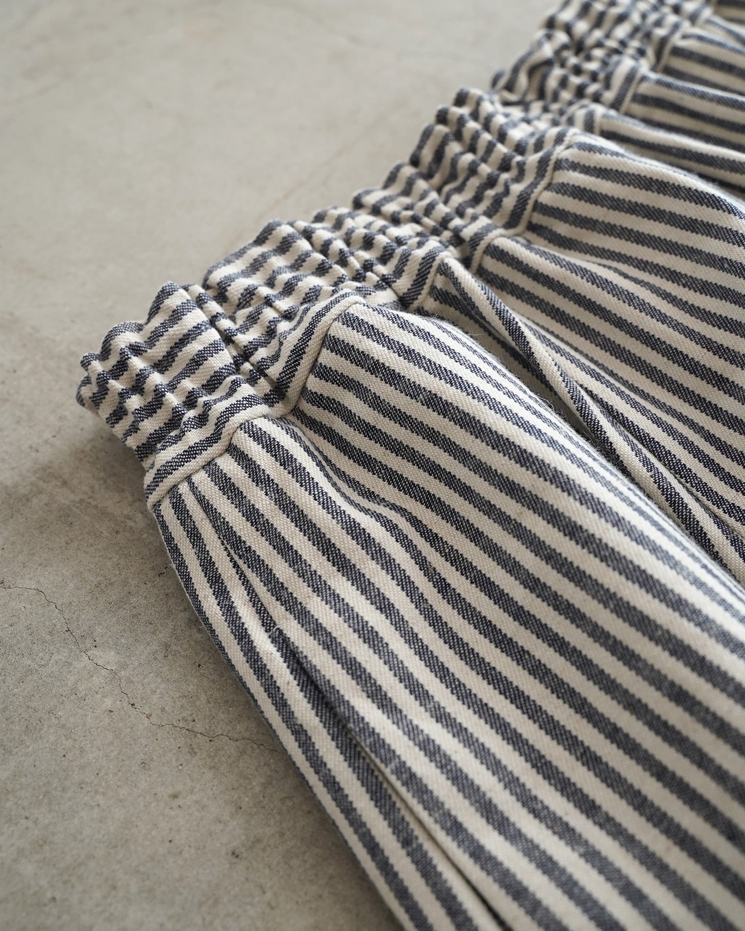 ・程よく厚みのあるヒッコリーデニムで、シルエットを美しく保つ