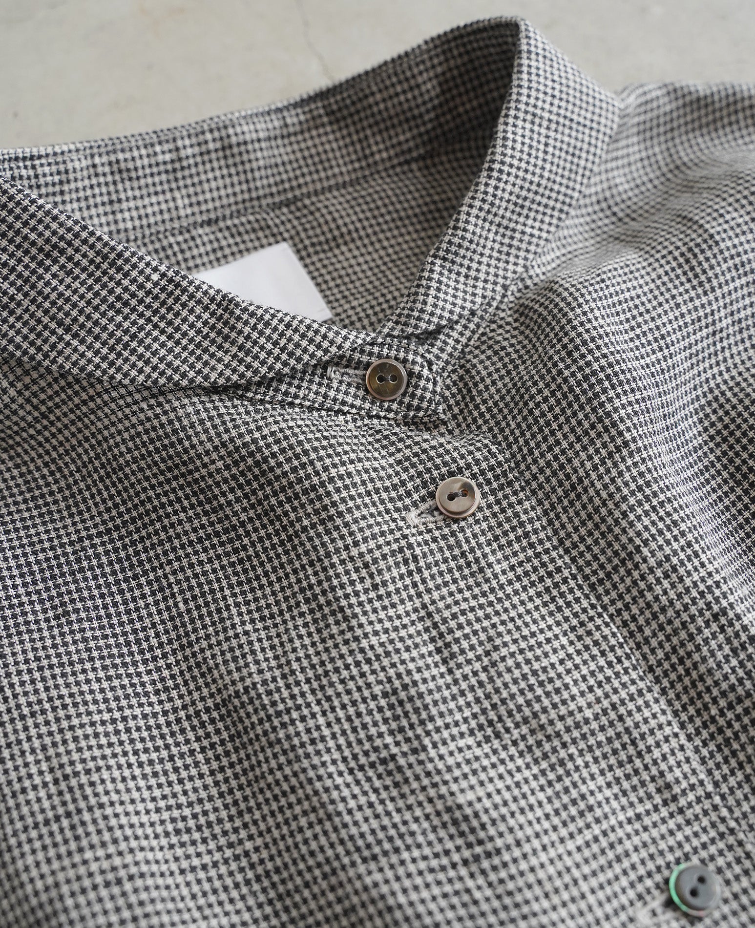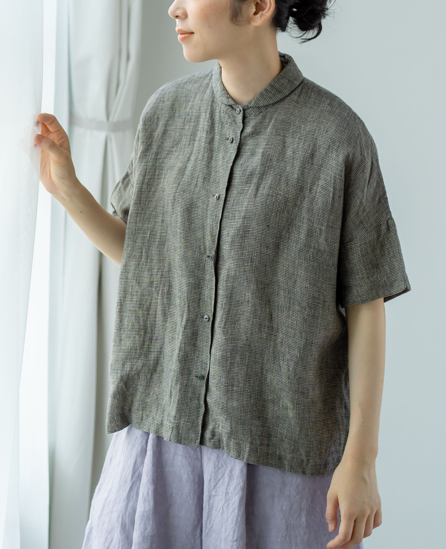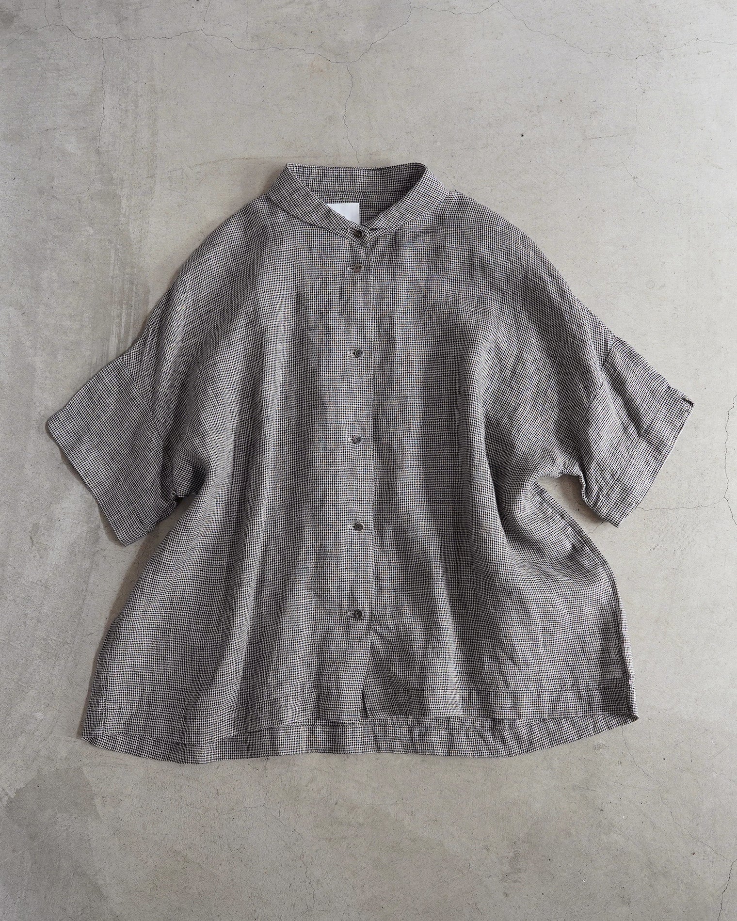 半袖ダッチカラーシャツ / リネン千鳥格子