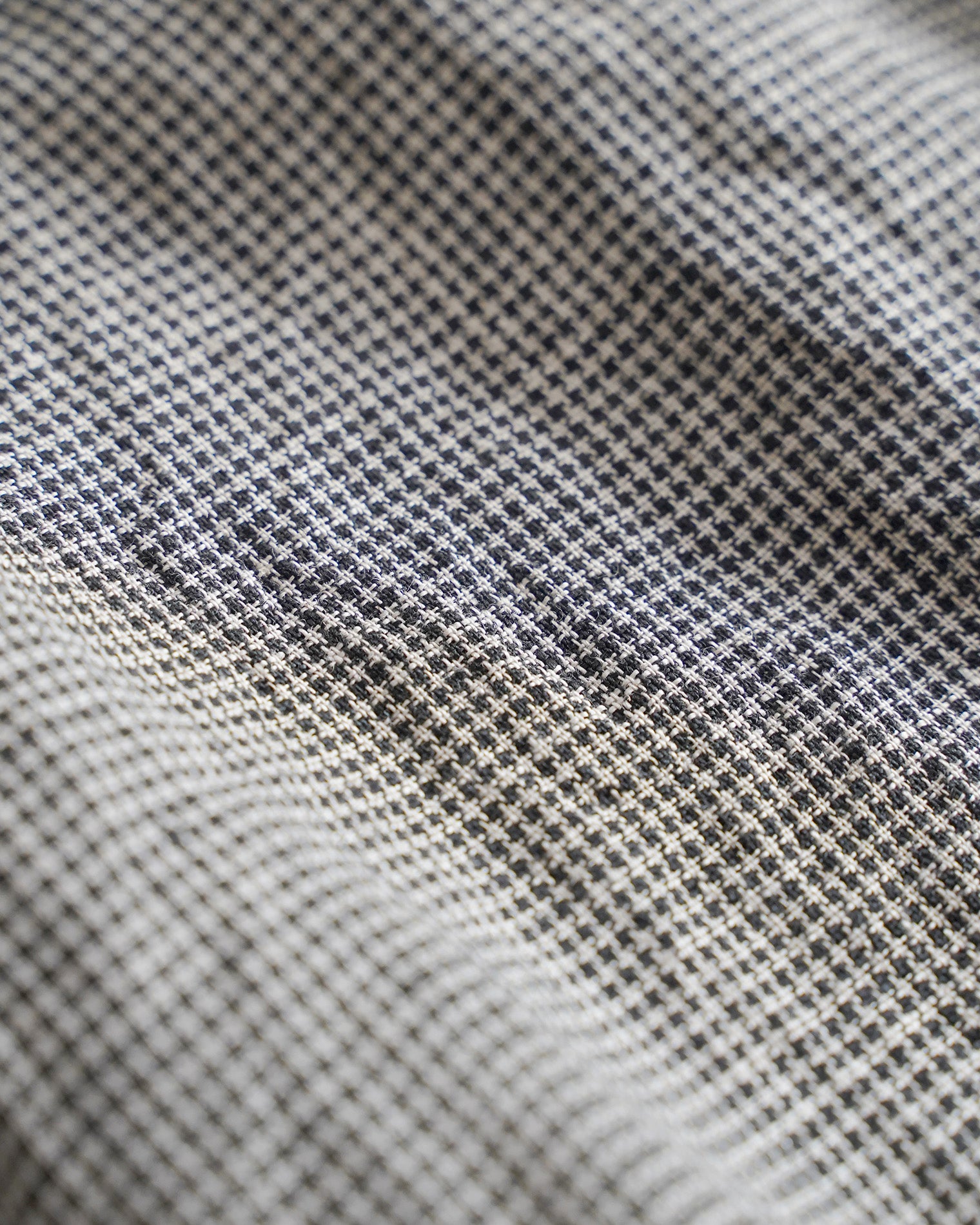 細かなリネンの千鳥格子が、明るい色にもシックなスタイルにも合わせやすく馴染みます。