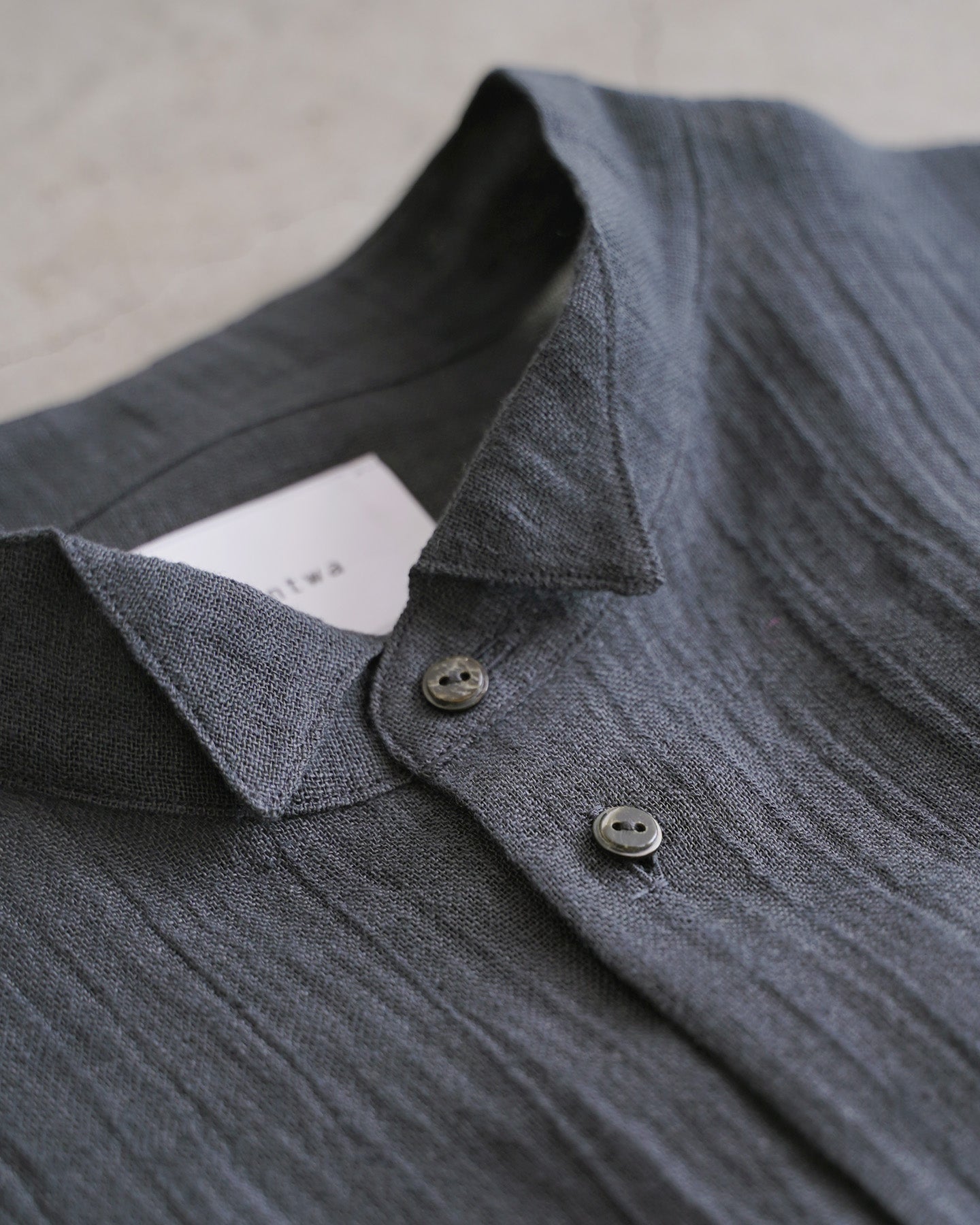 ▫︎entwaでは、ご家庭で安心して洗濯いただけるよう、あらかじめ生地洗い加工のテストを行っております。初めて洗濯された際の生地の風合いや伸縮の変化を極力抑えるように試みていますが、洗濯の際は、品質表示を参考の上、ご家庭の洗濯機に合った方法をお選びください。