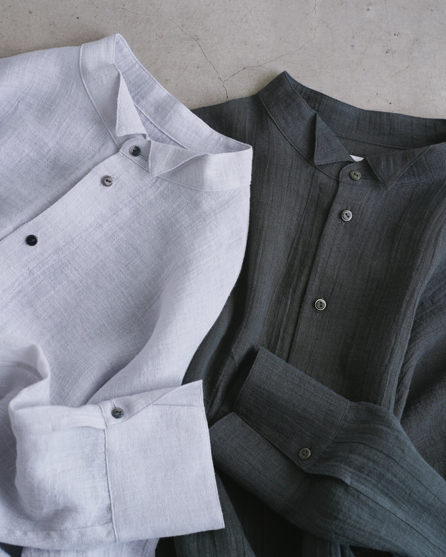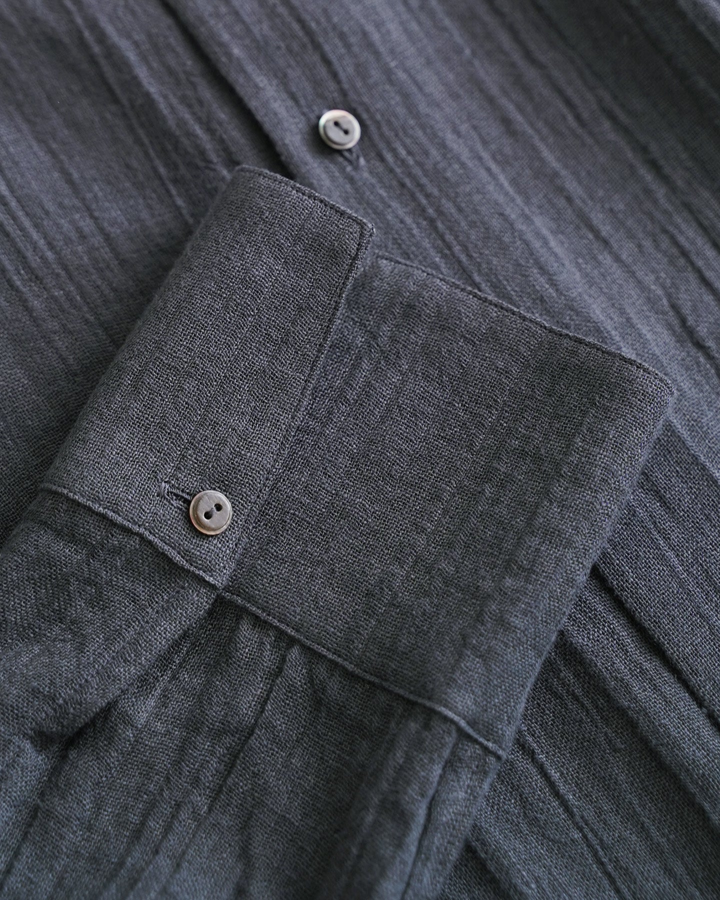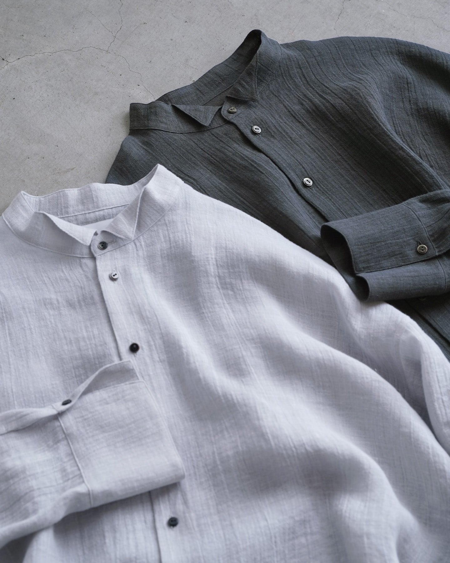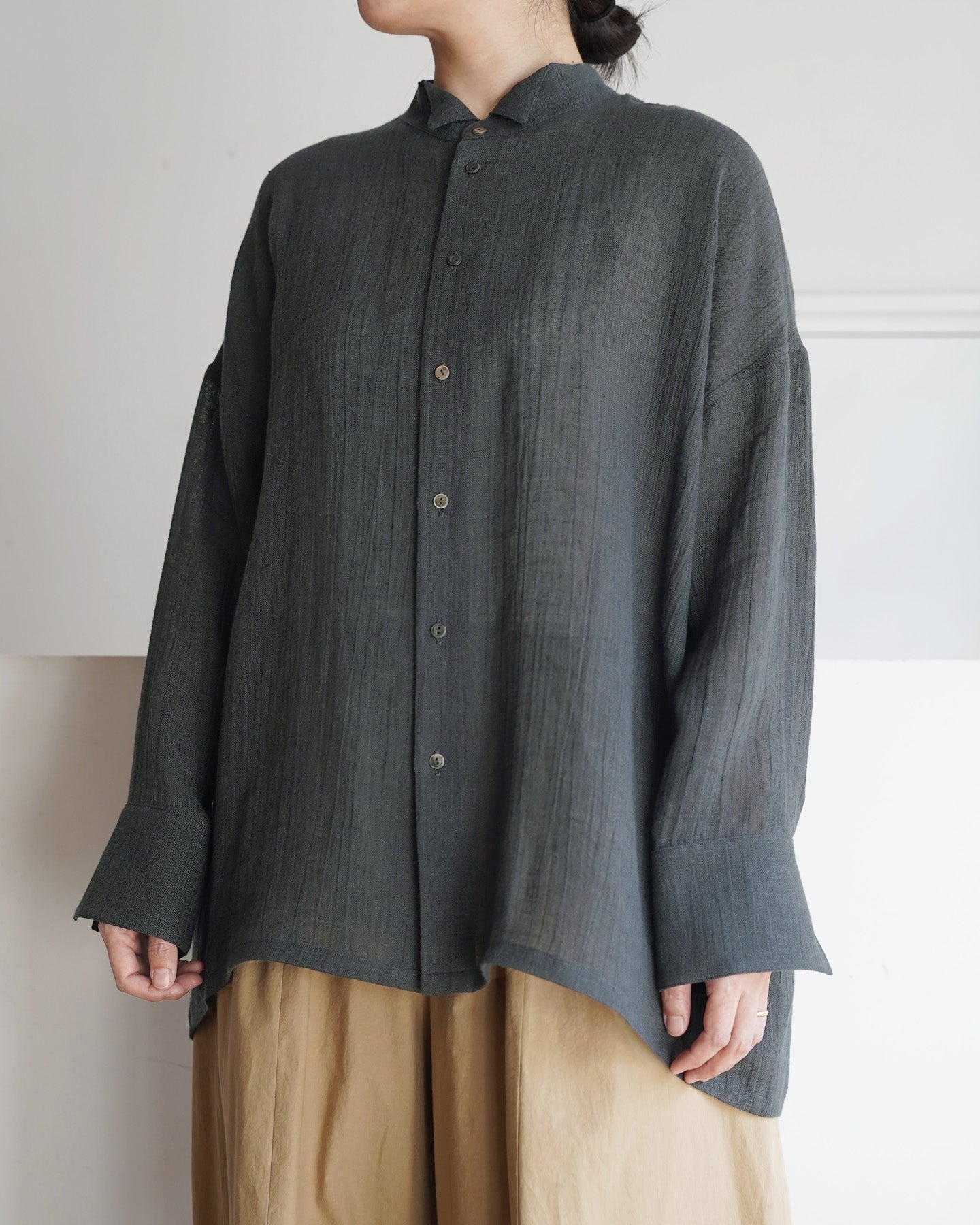 雰囲気のあるリネンボイル生地を使用したオーバーシャツ。
